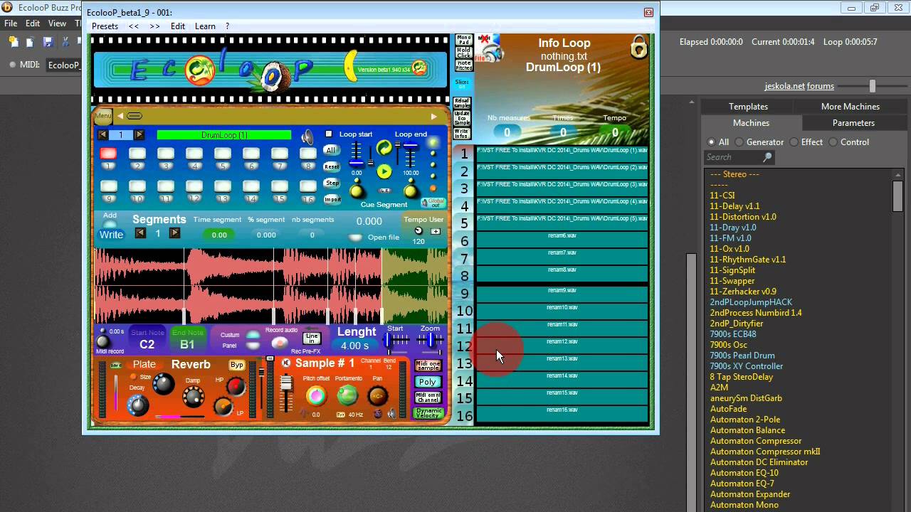 This loop generator calculates tempo and saves detailed information including time segments linked to sound files, enabling efficient organization and retrieval of loop data. EcolooP's soundbank compatibility allows access to a wide variety of pre-existing sound files, facilitating immediate music production. Regular updates have improved the interface and performance, introducing features such as enhanced loop displays, retrigger functions, refined MIDI player controls, and optimized CPU usage, making it a reliable tool for producers.