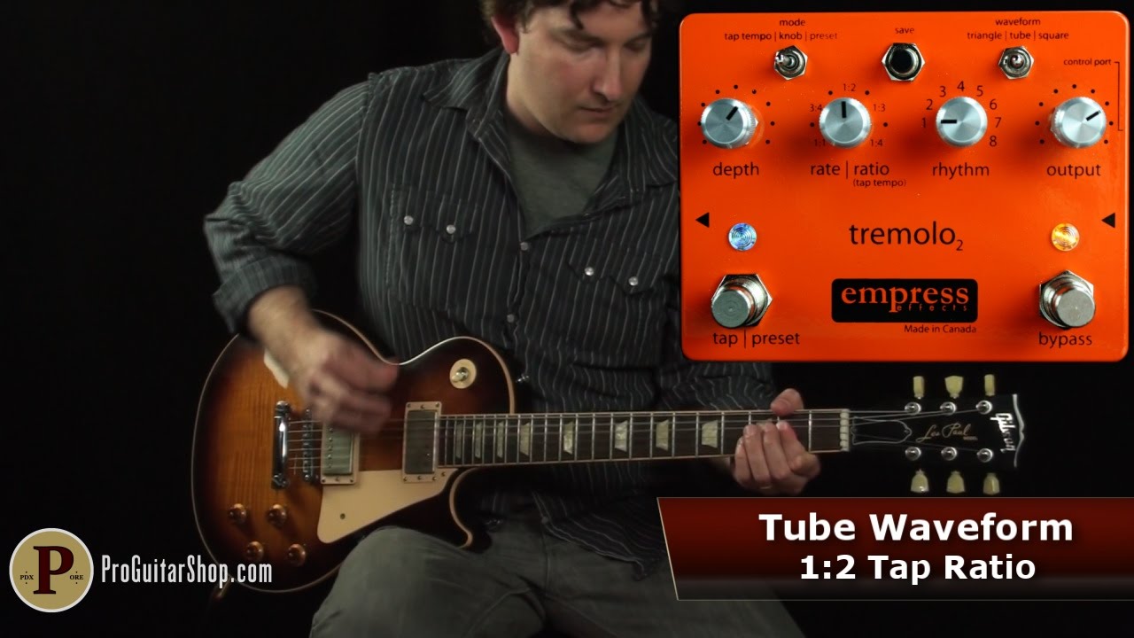 Empress Tremolo delivers a pristine, noise-free sound that avoids the common low-frequency throb typical of tremolo effects. It offers three waveform options to sculpt your tone, from classic asymmetrical waves inspired by vintage amplifiers to square and triangle waves for harder or traditional tremolo textures. Features like tap tempo with ratio settings, a unique two-speed mode for instant rate switching, rhythmic patterns, and a built-in gain stage to compensate volume drops ensure a comprehensive and musical tremolo experience.