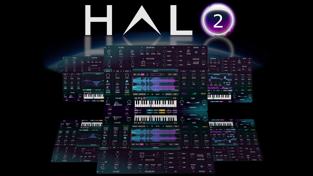 With over 430 presets and 300 sample banks, HALO-2 delivers a wide range of sounds crafted from various hardware and software sources. Its unique layering system combines sample, sub, and synth layers to produce sounds with exceptional clarity, depth, and character. The onboard arpeggiator features an intuitive random melody generator, allowing users to create fresh riffs and progressions effortlessly. Extensive modulation options, including multiple filters, distortion types, and an audio frequency modulation engine, empower users to shape and transform sounds in countless ways.