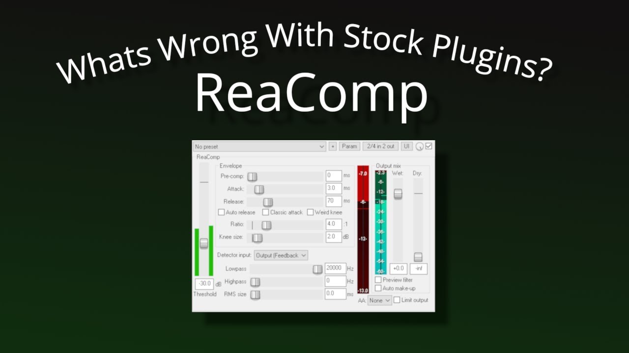 Additional capabilities include adjustable RMS size for different detection sensitivities, oversampling antialiasing with optional limiting to maintain audio clarity, and an optional lookahead function that improves transient handling. ReaComp also features make-up gain and a wet/dry mix control, allowing users to blend the compressed signal with the original sound. Its efficient design ensures low CPU usage, making it suitable for complex projects, and it provides useful metering to monitor compression effects clearly.