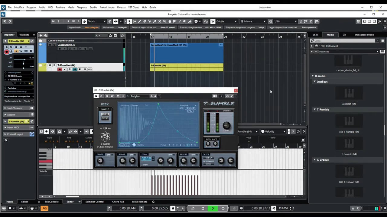 The plugin excels in producing diverse rumble textures, including resonant, subby, noisy, deep, and mechanical sounds. It features an effects chain that includes a driver, robotizer, echo delay, reverb, and multifilter, all routed through a sidechain compressor driven by the kickdrum itself. This setup ensures the bassline sits perfectly in the mix, maintaining clarity and punch while adapting dynamically to the rhythm.